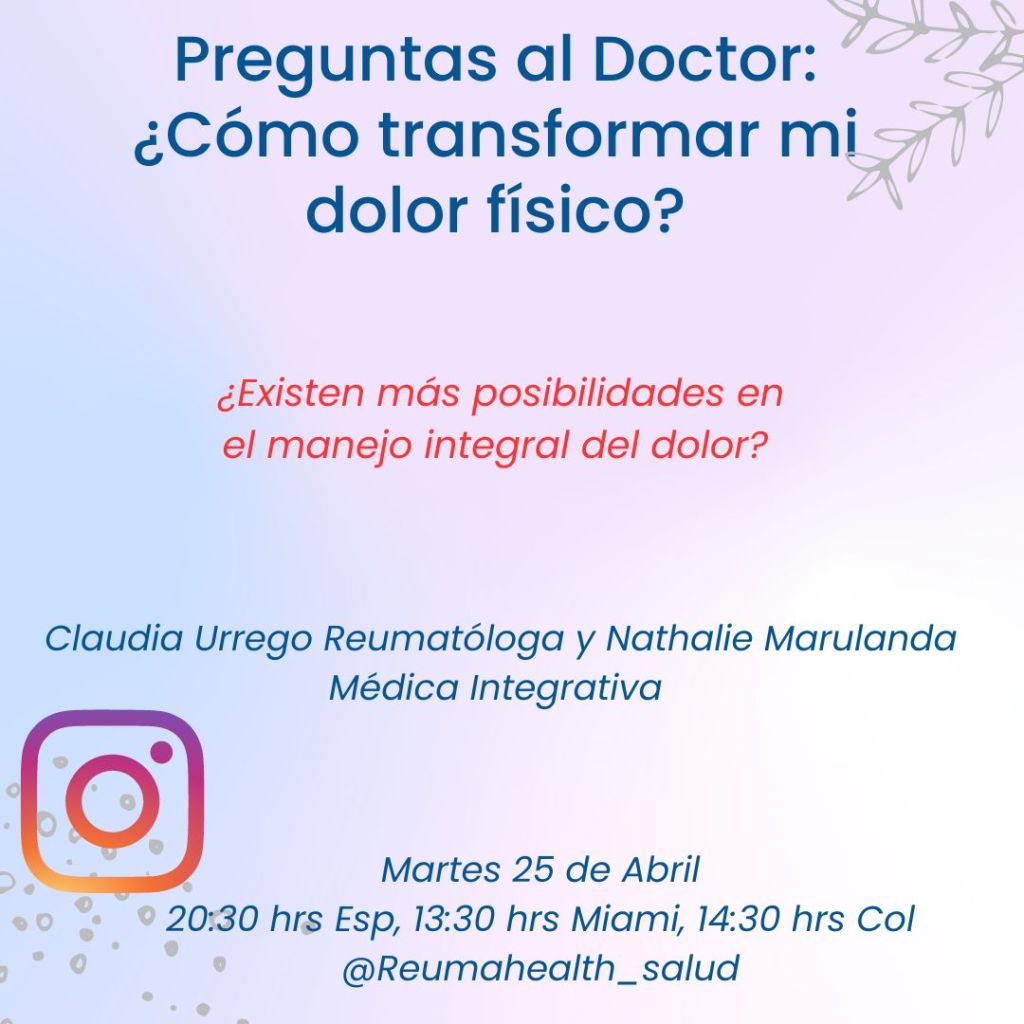 Participan: Claudia Urrego Laurin -Reumatóloga- y Nathalie Marulanda -Medicina integrativa-