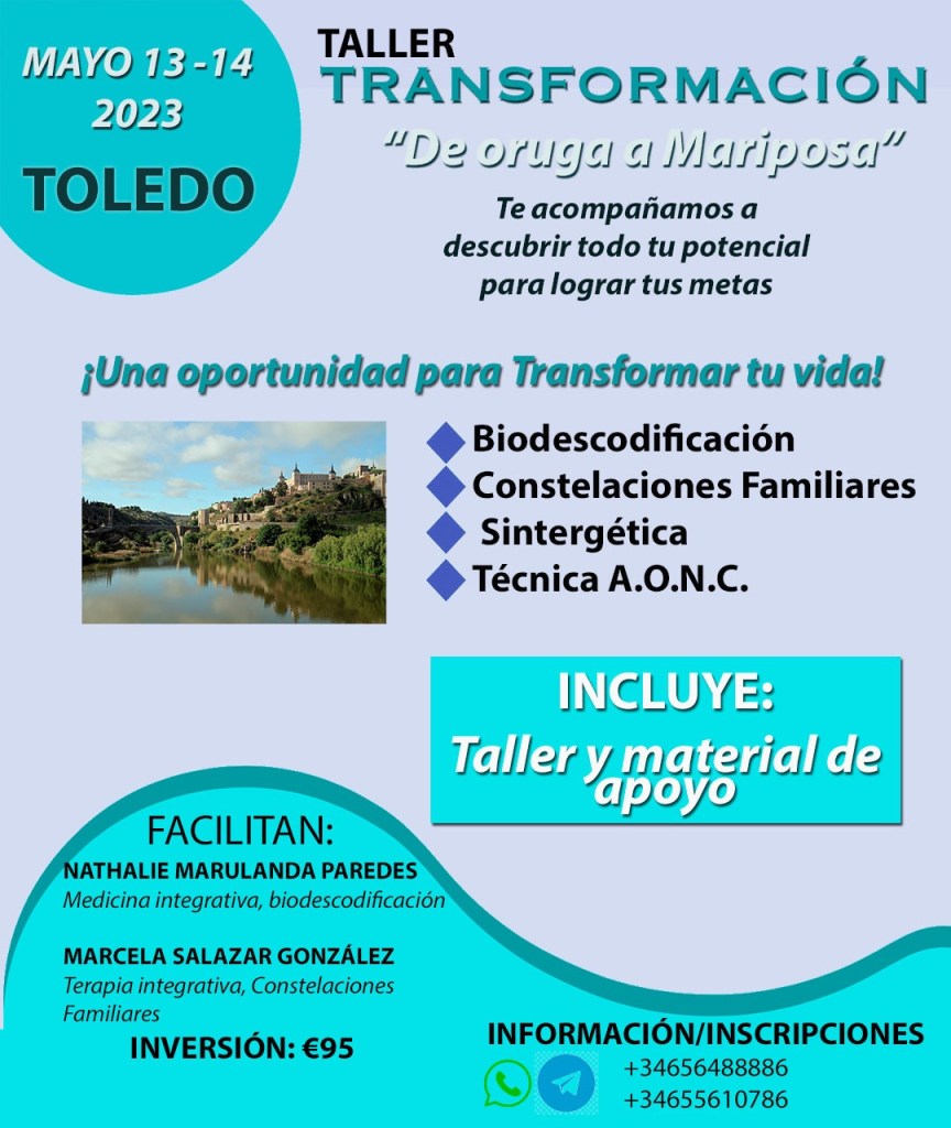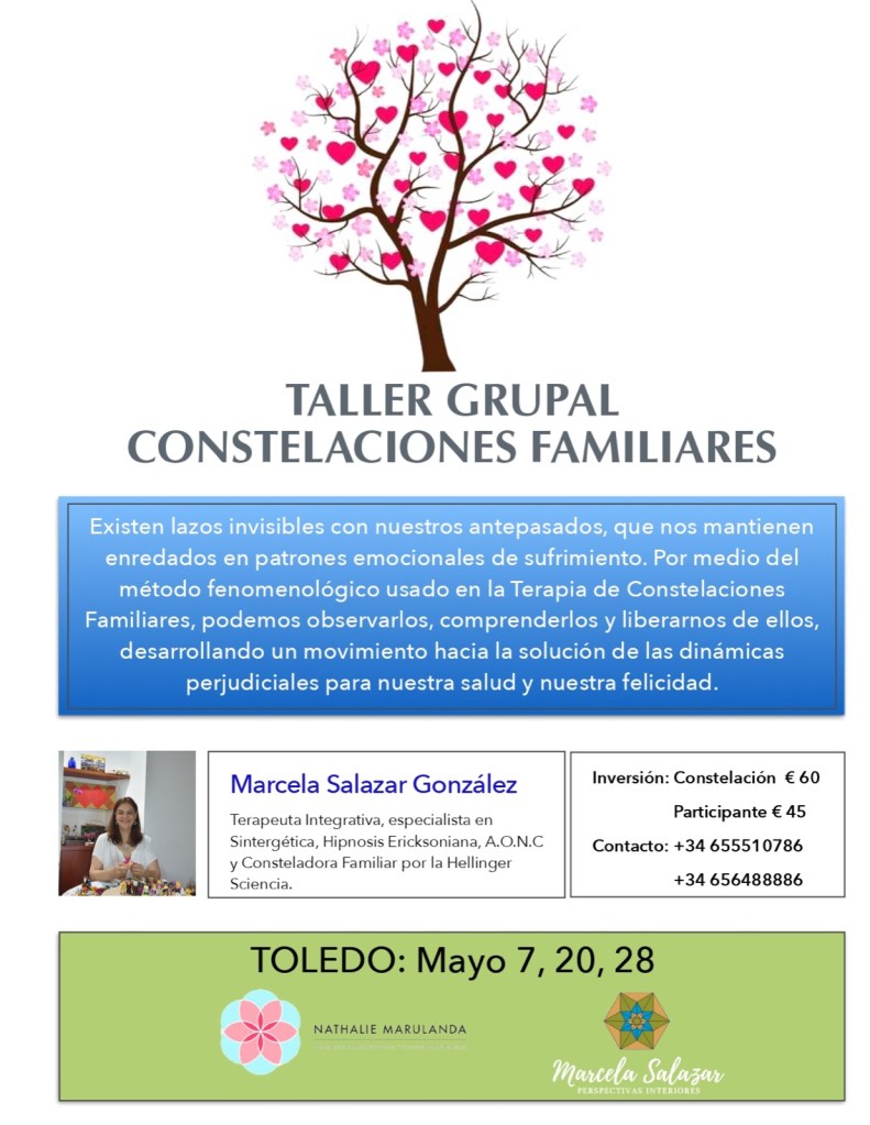 Somos un grupo de terapeutas y compañeros de camino que durante el mes de mayo y junio te ofrecemos una serie de opciones en Toledo para ti o para otros a quienes quieras invitar: talleres, Constelaciones Familiares, Caravana de Sanación, Sintergética…