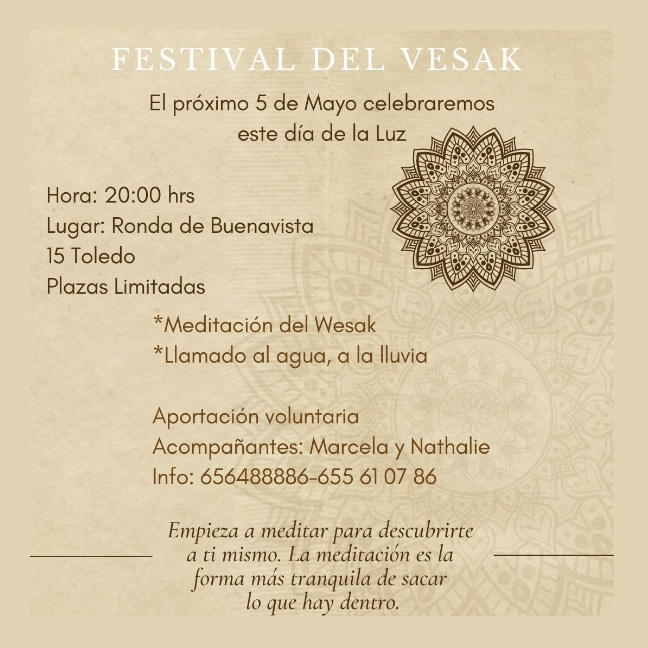 Se acerca un día maravilloso: El Festival del Vesak. Nos reuniremos para meditar escuchando y llamando el amor a nuestro corazón.