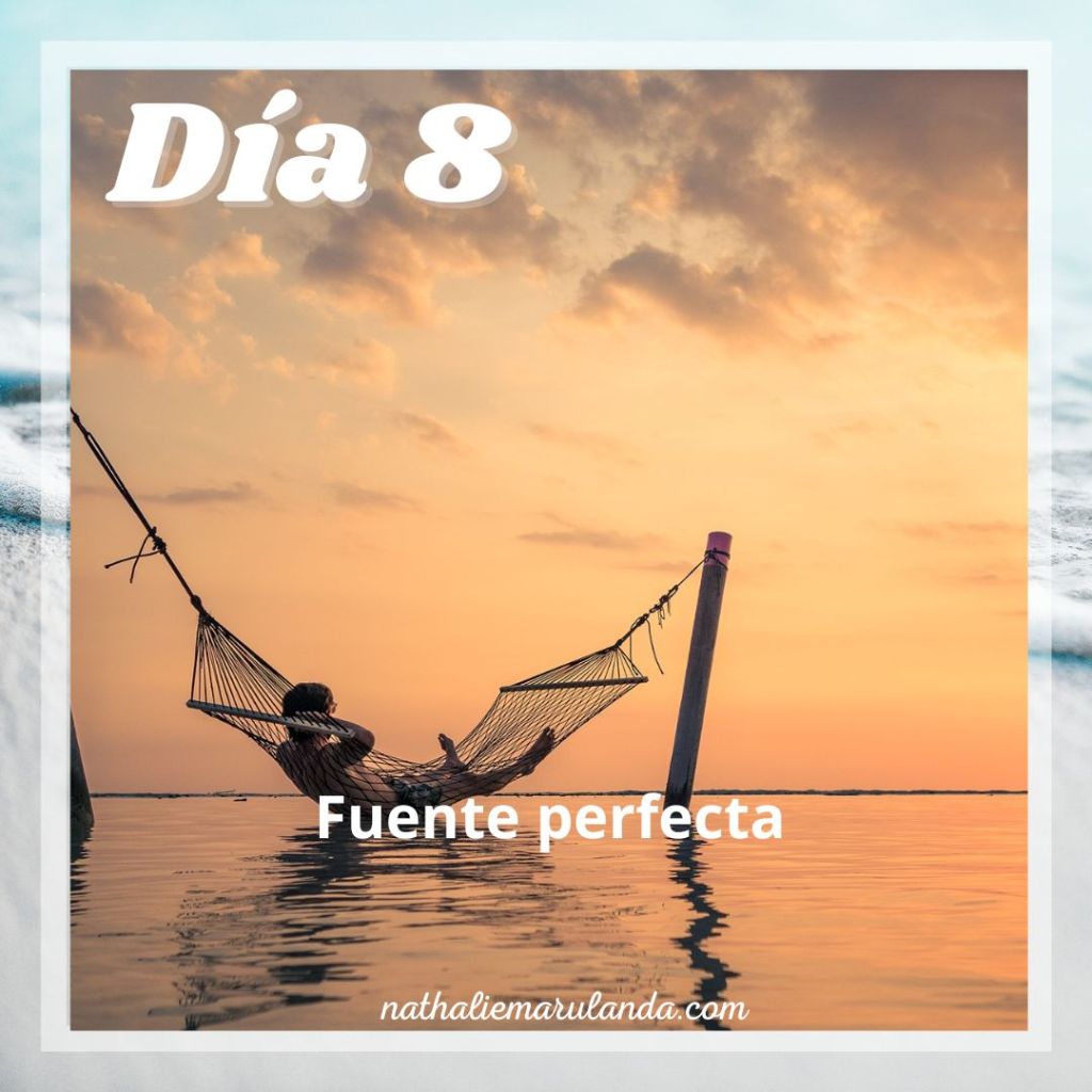 Día 8: Fuente Perfecta, es una palabra que ayuda a borrar creencias y memorias del pasado: Por ejemplo: voy a enfermar, no me va a alcanzar, si trabajo duro así podré.