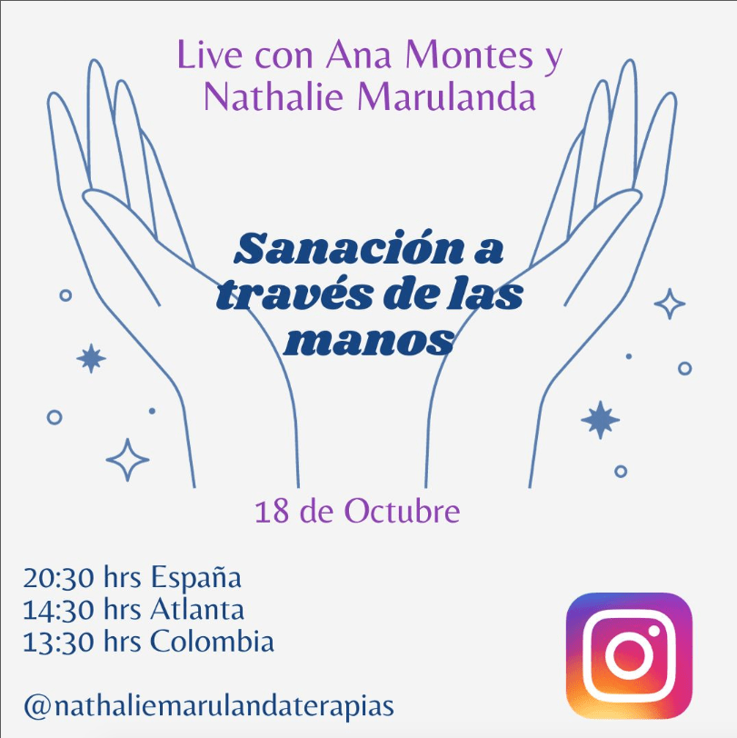 Este próximo miércoles 18 de octubre Ana Montes y Nathalie Marulanda te esperan para conversar sobre un tema precioso «Sanación a través de las manos»su experiencia en el uso de las manos en terapia.