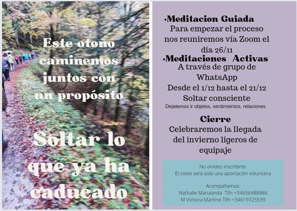 Este otoño caminaremos juntos con un propósito «Soltar lo ya caducado». Maria Victoria y Nathalie te invitamos acompañarnos en las Meditaciones que realiza este otoño: Guiada nov. 26 y Activas del dic. 1 al 21.