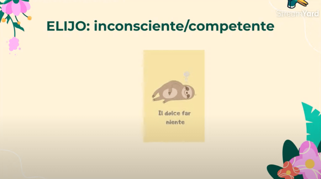 En este caso en relación con el tiempo les voy a poner un ejemplo mío: yo cuando estuve en la época de la pandemia tenía un trabajo en el sector salud, donde era casi que como una sala de urgencias para mí, contestar los mensajes de WhatsApp porque eran de pacientes de fórmulas médicas, entonces yo hasta hace poco me di cuenta que yo había quedado con ese patrón en mi inconsciente que sonaba el mensaje del WhatsApp y yo decía tengo que responder pero me dije a mí misma «eso no es así porque yo puedo elegir en este momento si respondo o no, porque ya no estoy en ese trabajo, ya no estoy en esa misma circunstancia, entonces no tengo que», ahí es una forma de darnos cuenta que es cuándo estamos en ese patrón inconsciente, cuando repetimos mucho esa palabra y ahí podríamos decir que a nivel de nuestro inconsciente y del manejo del cerebro estamos en algo que llamaríamos inconsciente incompetente.