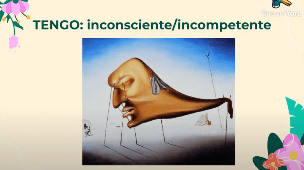 El cerebro y el inconsciente incompetente, es como esta imagen: tengo qué, el tiempo pasa, realmente eso no es conmigo, ya sé que eso como es, pero yo no puedo hacer nada… ahí está, y eso sería el inconsciente e incompetente.