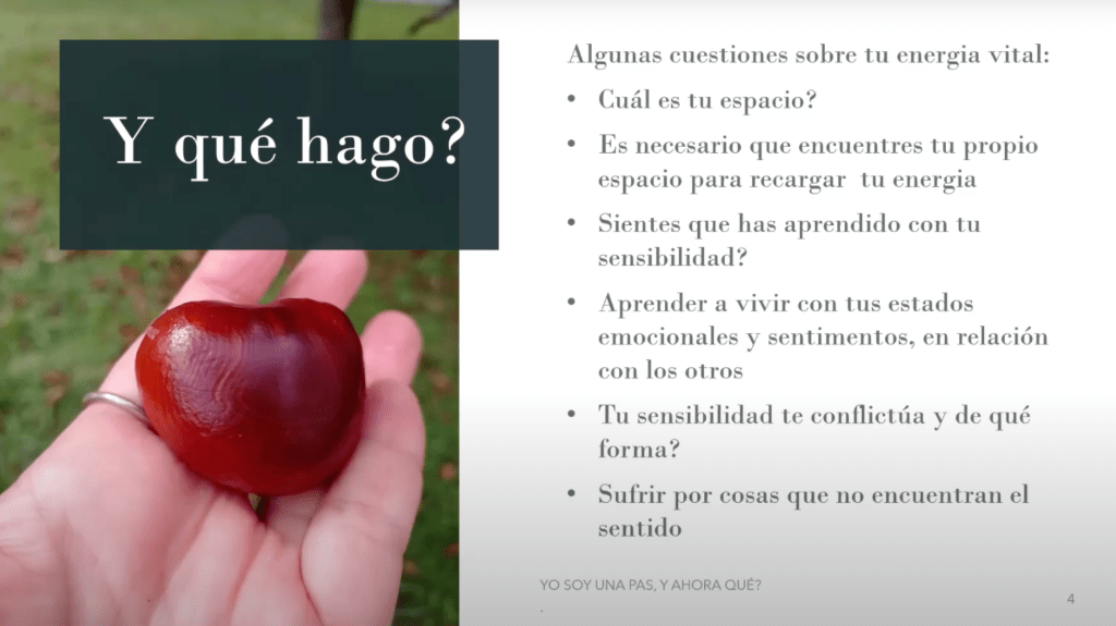 Y entonces ahora qué hago vamos a hablar sobre algunas cuestiones de la energía vital de una persona altamente sensible, relacionadas con qué con esa energía interna que tenemos todos los seres humanos para vivir para desarrollar para sentirnos vivos, ¿por qué? porque para una persona altamente sensible saber cuál es su espacio y en dónde está es absolutamente vital, porque una persona altamente sensible se desgasta mucho debido a qué pues debido a la cantidad de estímulos que recibe. Y entonces ese espacio de recuperación para cargar su propia energía es aquí un punto nuclear, esto quiere decir que tú puedes decidir estar en tu cuarto tú, puedes decidir cargar tu energía en la naturaleza, cargar tu energía con la música, pero es absolutamente clave que seas consciente de eso, tú no eres una persona perezosa, no eres una persona necesariamente lenta, eres una persona que necesita tiempo para poder manejar todas esas percepciones y estímulos que están allá afuera.