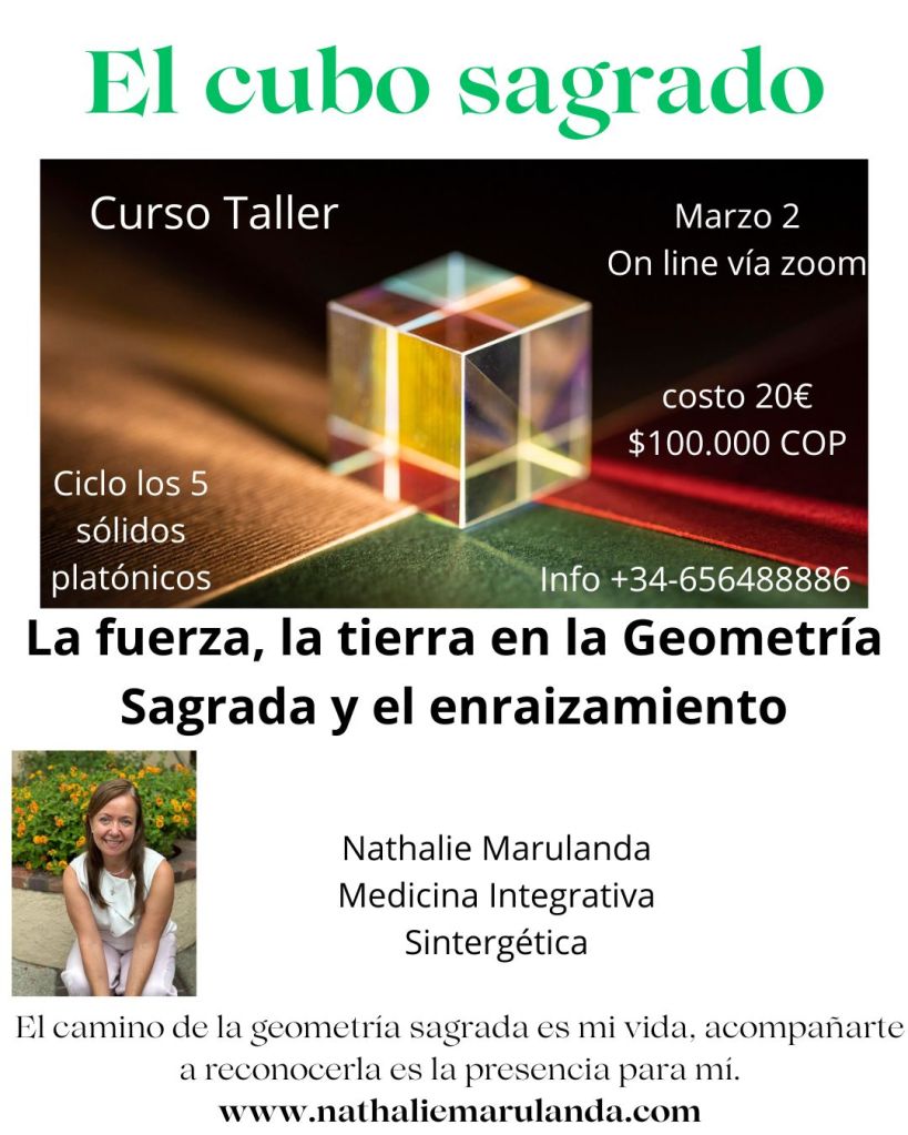 En cada taller trataremos un sólido en especial. La figura, la geometría del cubo nos recuerda la tierra, el cubo es esa energía, es esa relación con el elemento mineral, el cubo es tu tierra tu arraigo tu firmeza.