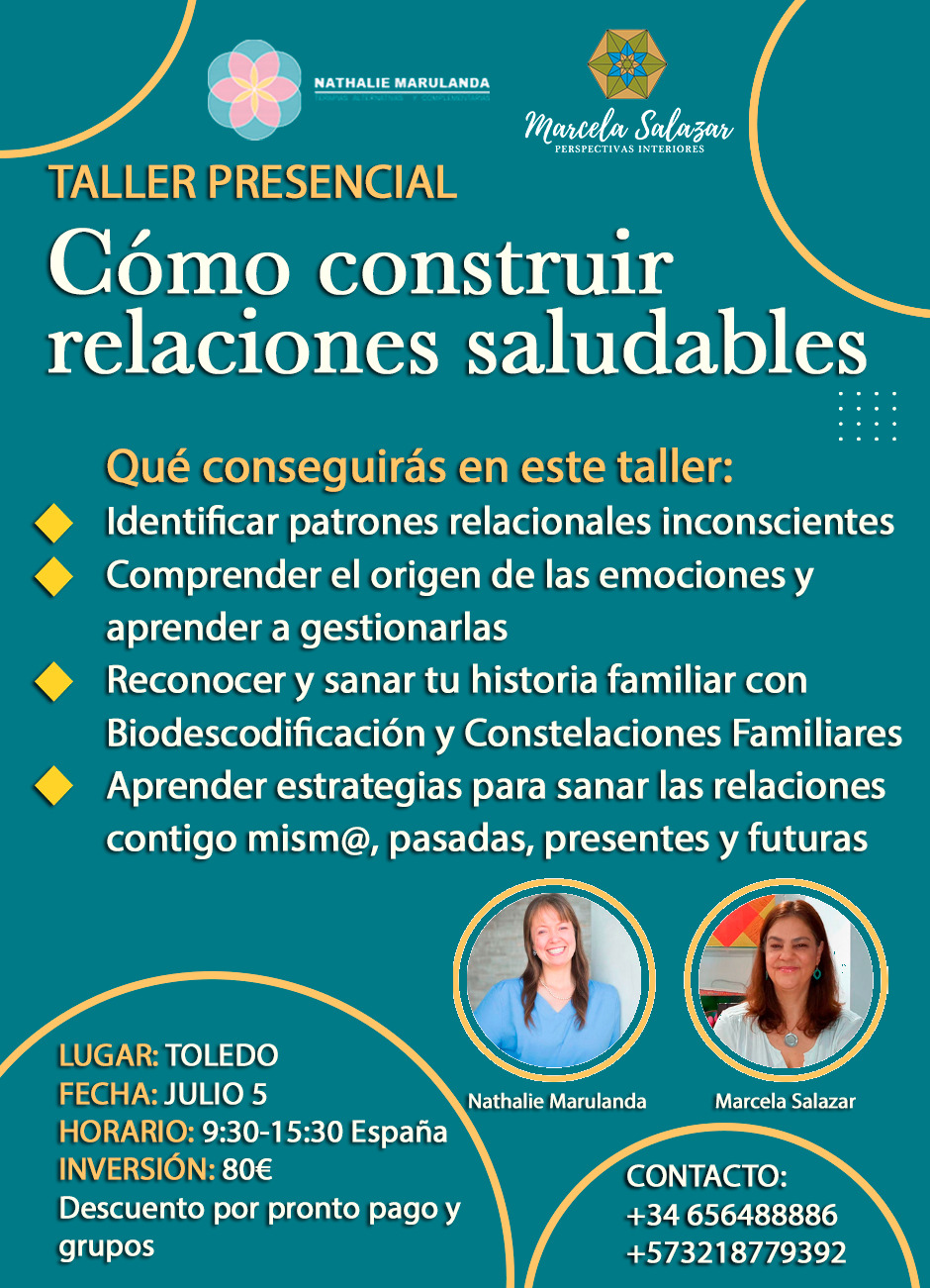 Te has preguntado ¿Cómo son tus relaciones? ¿Quieres mejorar tu forma de relacionarte? En este encuentro, Marcela y Nathalie Marulanda , hablamos del tema. Te explicaremos herramientas clave para sanar vínculos familiares, de pareja y amistades desde una perspectiva profunda.