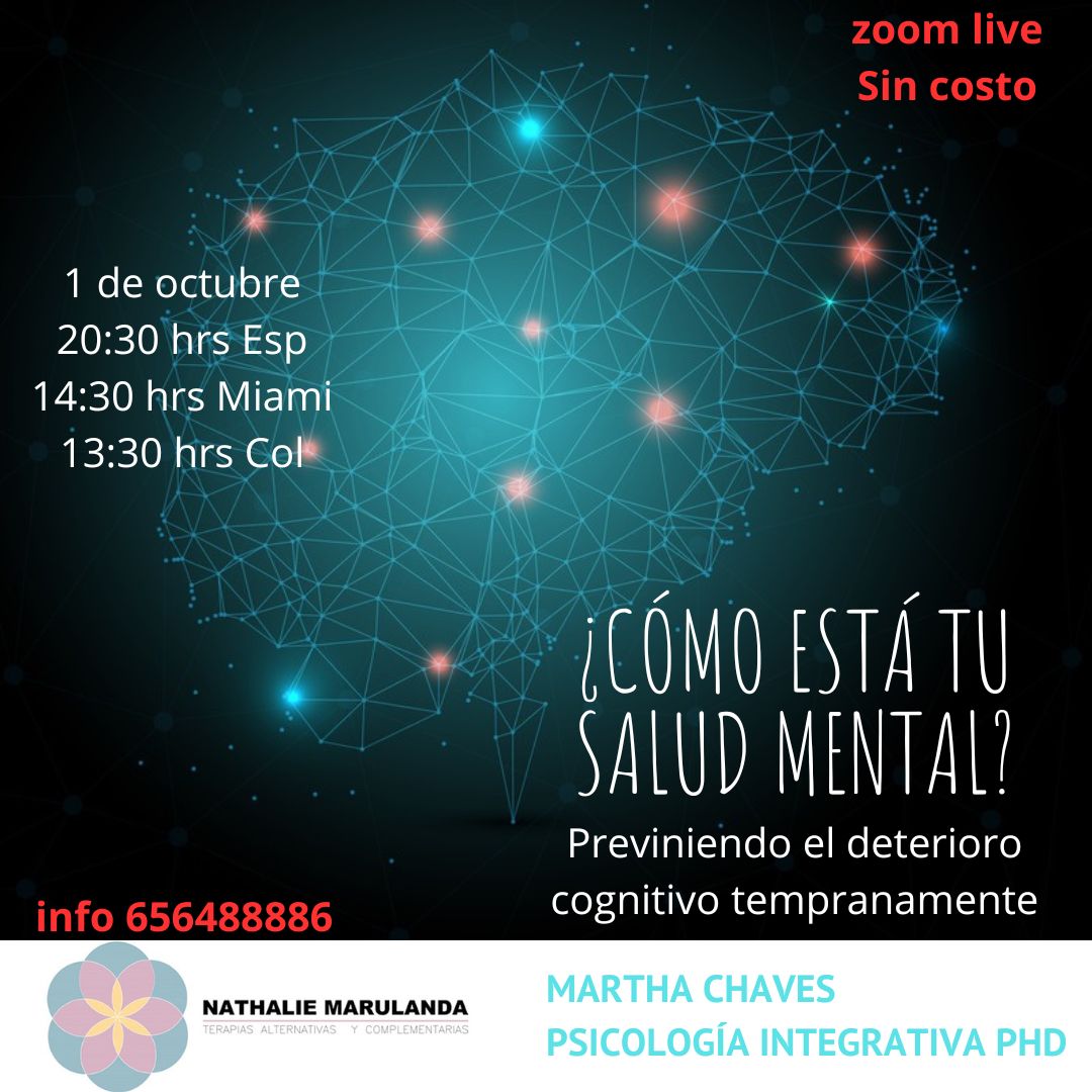 Te preguntas: ¿Cómo estará mi salud mental? En el mes de octubre iniciamos un ciclo de eventos en relación al cuidado de nuestro precioso sistema nervioso. El deterioro cognitivo no es solamente cuando envejecemos y comenzamos a experimentar cambios como la memoria o capacidades mentales.