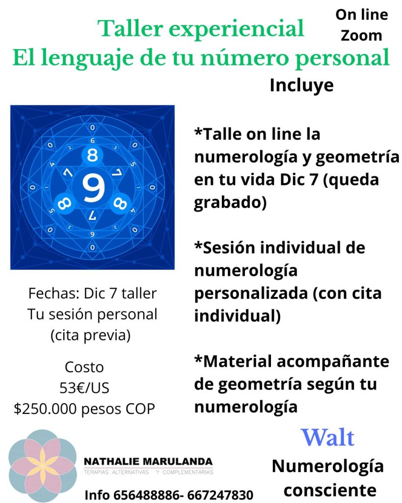 - Taller on line vía zoom donde revisaremos: El significado de cada número personal, quien eres, que huella te da el número a tí y la importancia del equilibrio junto con la geometría sagrada